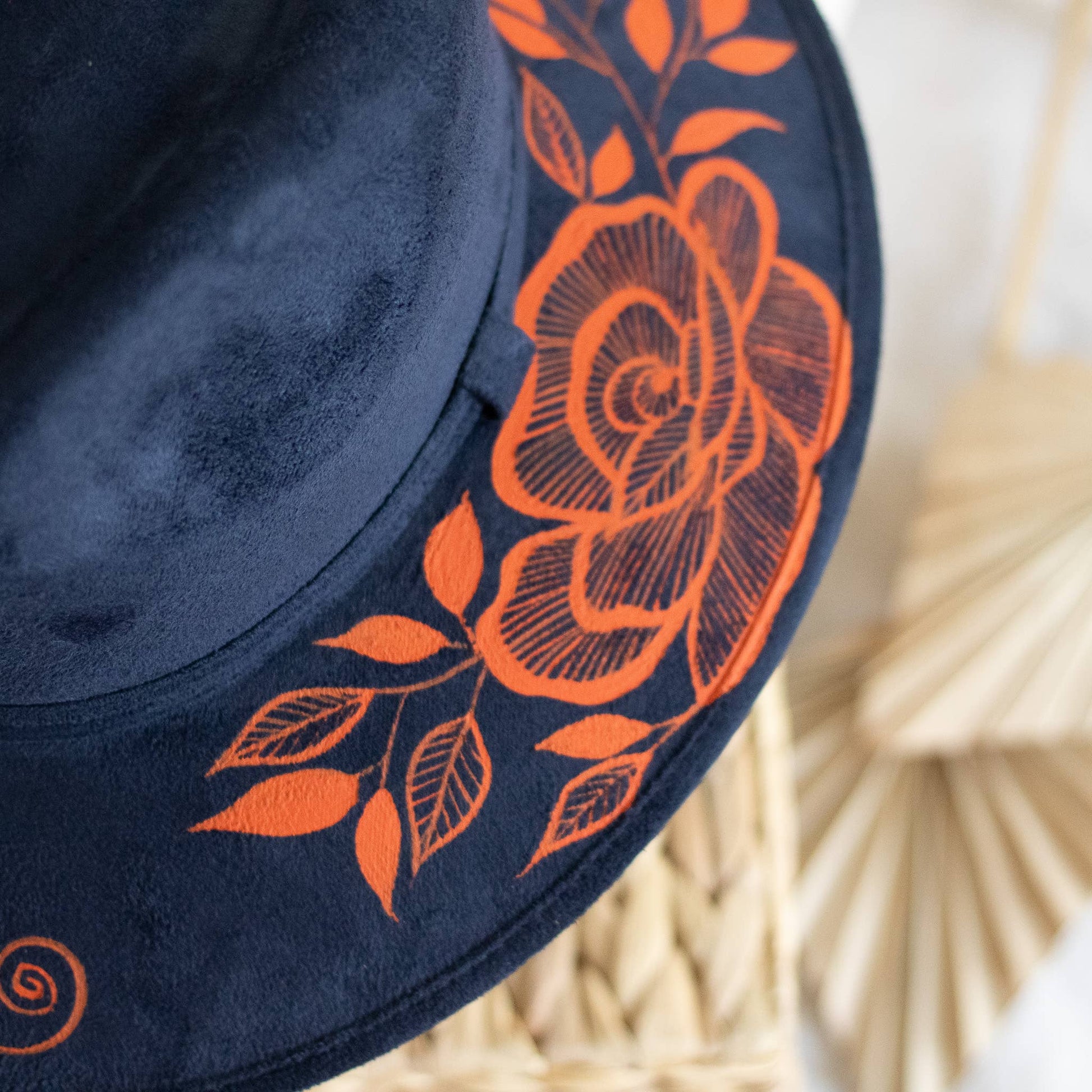 Wolf & Sparrow "Veronica" Hand Painted Western Statement Hat - Navy & Orange